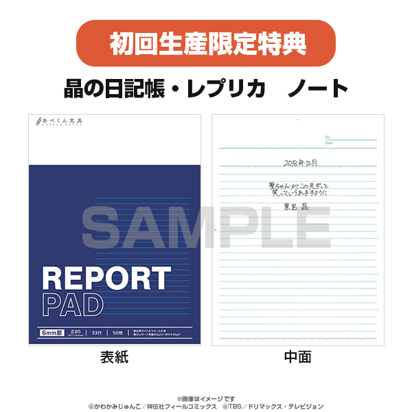 劇中に登場した晶の日記帳の表紙を再現したノートを、最終話での晶のメッセージ付きで封入!
