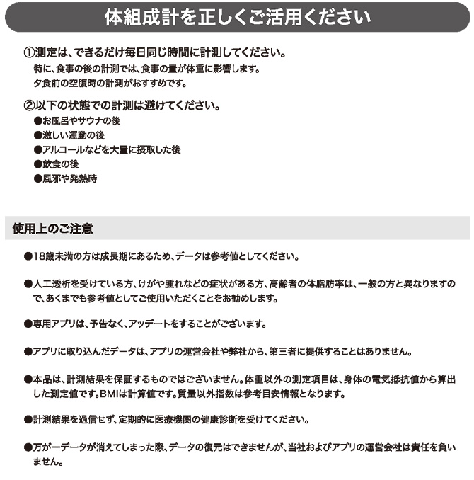 ※測定の結果は決して自己診断しないで専門家の指示にしたがってください。