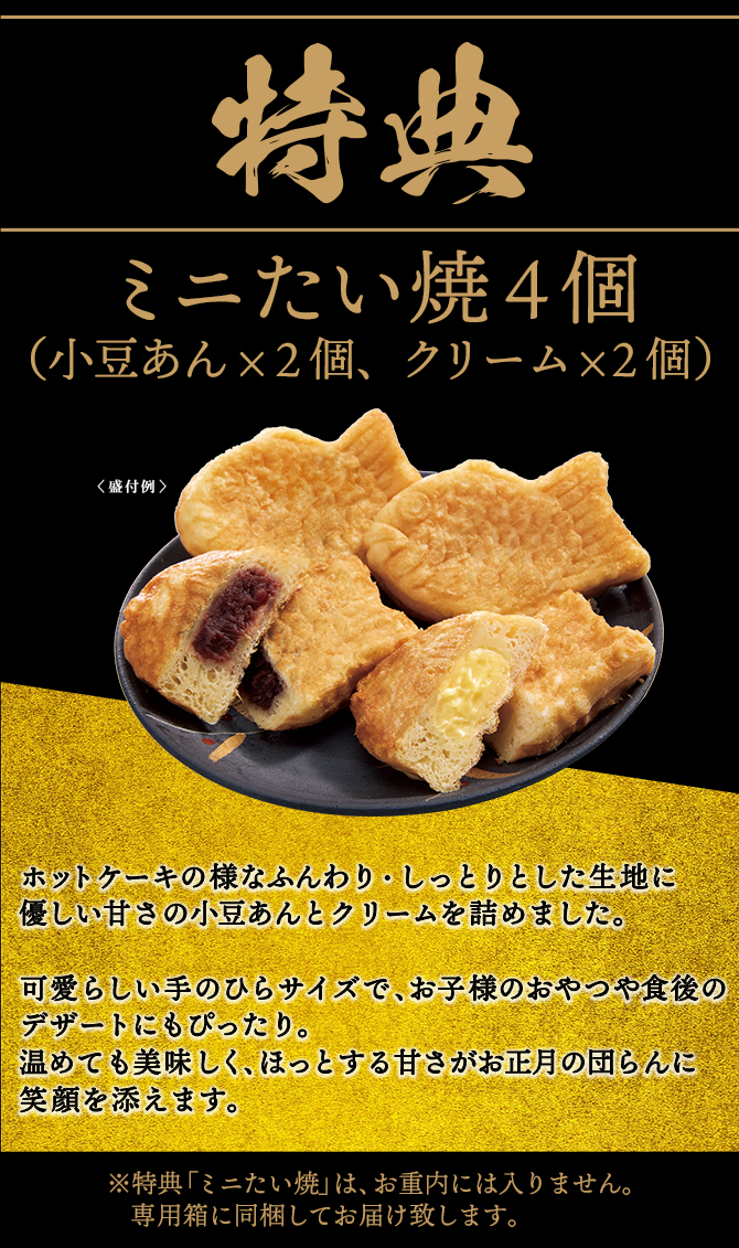 【特典】ミニたい焼4個(小豆あん×2個、クリーム×2個)
