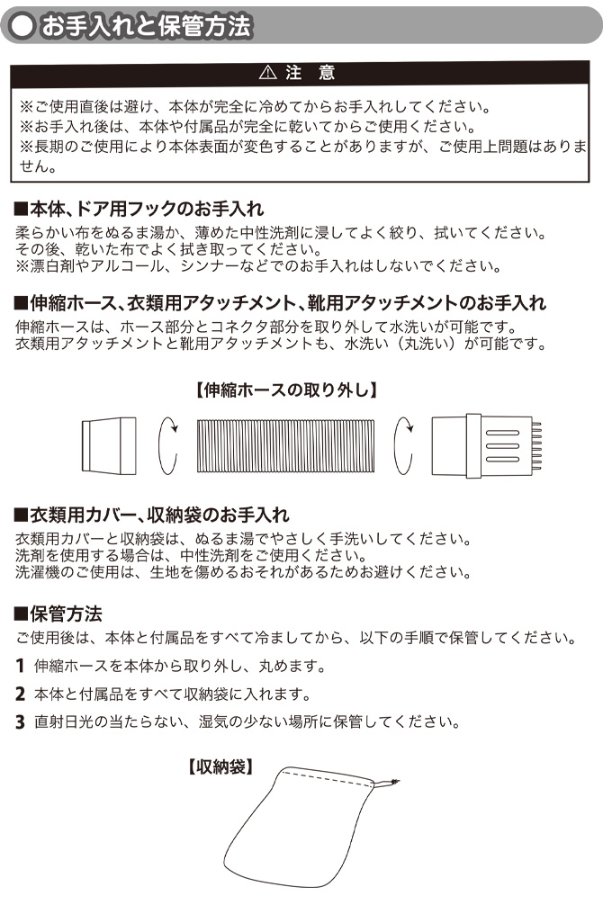 コンパクトながら強力な温風で、布団・衣類・靴・湿気がこもりやすい場所までしっかり乾燥。