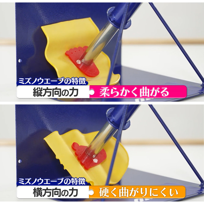 一方横方向の力には硬く曲がりにくいので、足元のグラつきを抑えることができます。