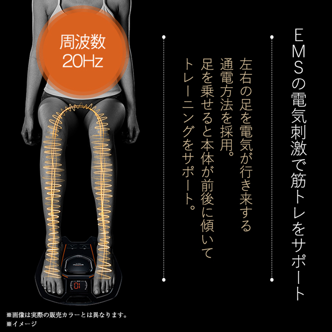 筋肉を効率よくトレーニングできる周波数20Hzを採用。電気刺激によって歩行に必要な足裏・ふくらはぎ・前すねの筋肉を刺激し効率的にトレーニングします。